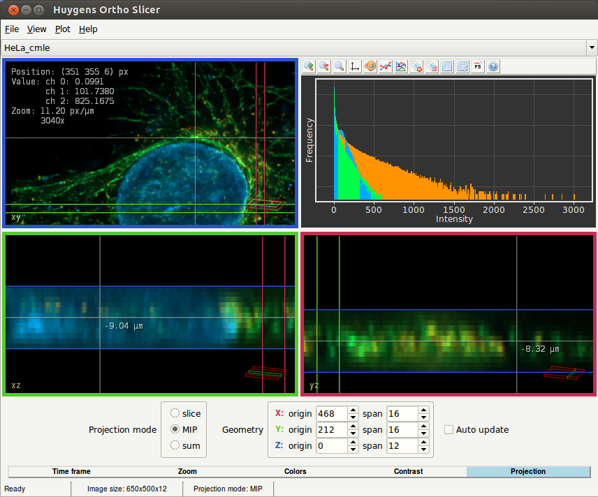 SVI has a long experience in visualization next to its strong focus on deconvolution. Several interactive 3D visualization tools are already included in the Huygens Essential and Professional. These tools can be extended with additional visualization options (see bottom page).