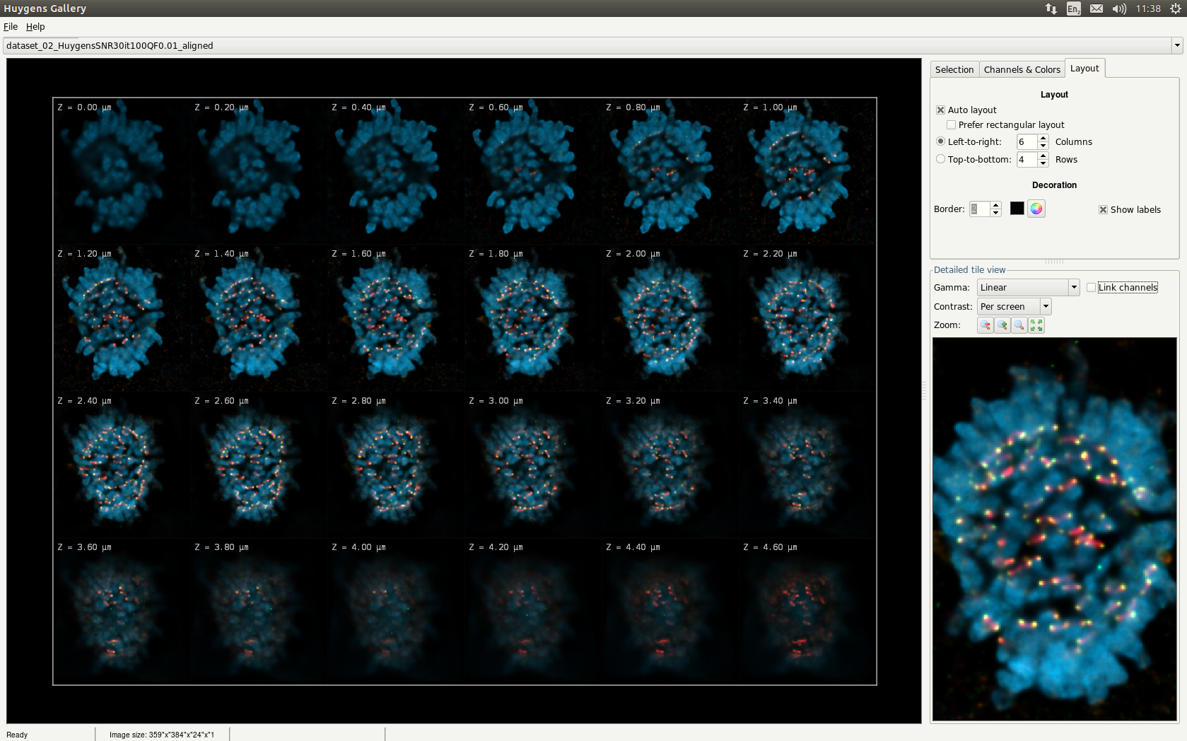 The Gallery Tool. The Gallery tool shows all individual Z slices or time serie frames in one overview, and allows detailed inspection of the slices with the Detailed Tile viewer.The overview can be customized and saved for e.g. presentation purposes. |