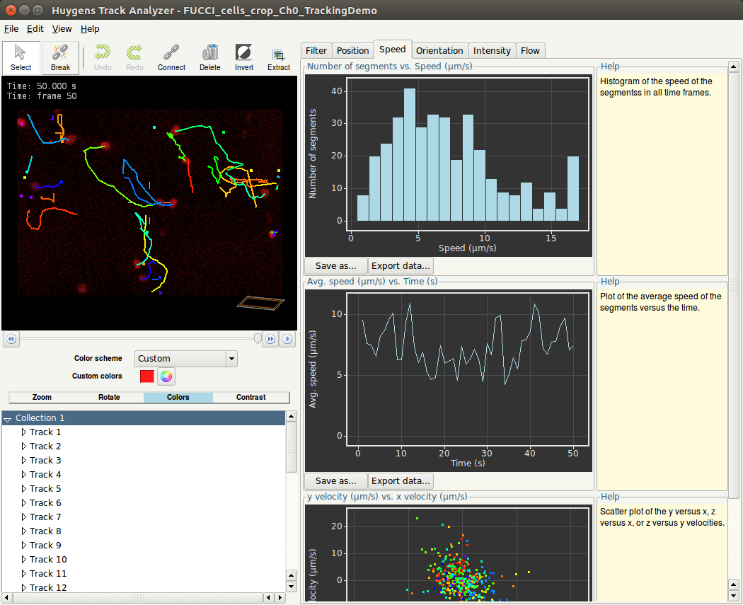 Several interactive analysis tools are available for Huygens to accurately perform 3D-4D measurements, and to obtain and export statistics about object(s), colocalization, and cell/object trajectories.