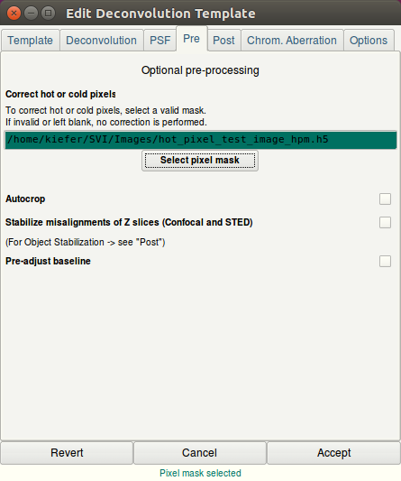 - デコンボリューション用; ホットピクセルまたはコールドピクセルを含む画像のデコンボリューションは、特に、これらのピクセルが強いノイズによるものではなく、カメラの欠陥によるものである場合に、デコンボリューションに影響を与えます。