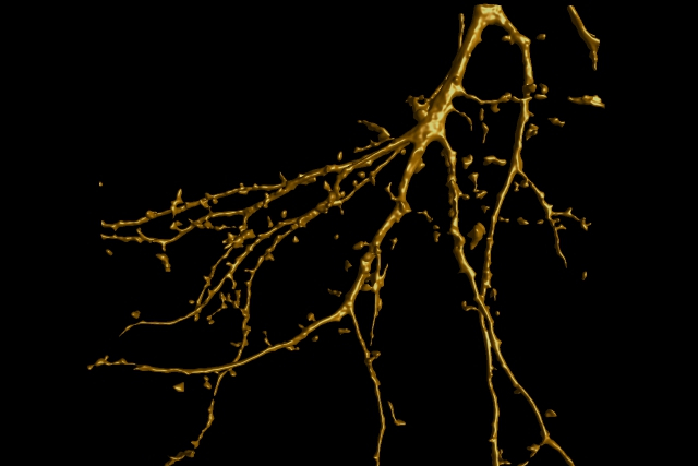 Huygens' AI segmentation tool allows segmentation of objects in close proximity to eachother, when the Threshold and the Watershed start to struggle. The AI tool allows both fully automatic as well as AI guided manual segmentation. More.