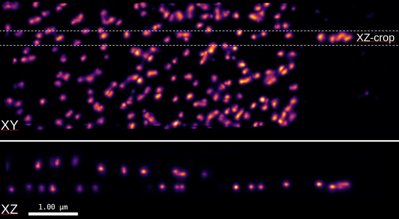Spahn C, Grimm JB, Lavis LD et al., Whole-Cell, 3D, and Multicolor STED Imaging with Exchangeable Fluorophores. STED images were deconvolved with Huygens. Nano Letters 19, 500-505 (2019)