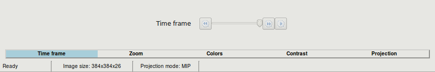 Click the 'Time frame' tab key at the bottom to view the time frame panel. Drag the slider to change the time frame or press the play button to animate the time series. The time frame that is actually displayed can be indicated in seconds (s) or as a frame number through the 'View' menu.